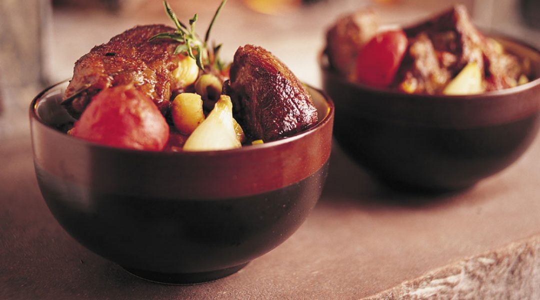 Carole Peck, executive chef of Good News Cafe in Woodbury, Connecticut, celebrates comfort food with her seasoned buffalo stew. A healthy and hearty combination of bison, fresh tomatoes, and green olives, seasoned with fresh rosemary, garlic, savory, and basil, this stew warms the soul and chases away the chill on a blustery winter day.