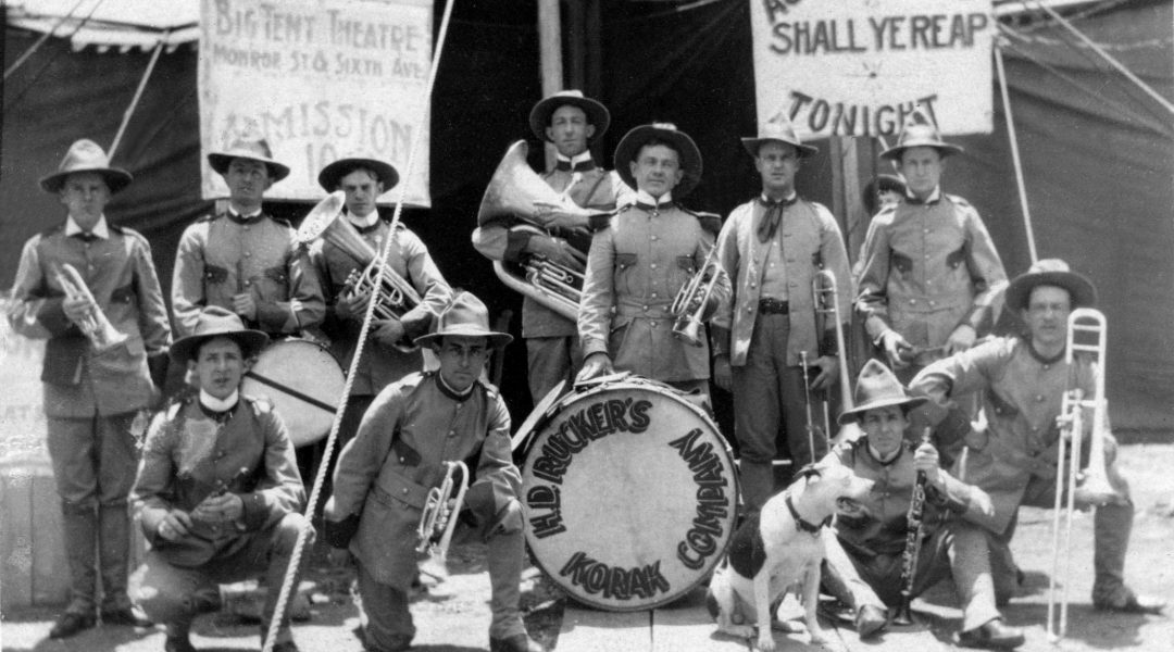 Rucker’s Famous Korak Wonder Company was self-billed as “the largest traveling medicine company in the world” and “the only one presenting high class plays with a change of program nightly.” Along with announcements for repertory performances of “Only a Woman’s Heart,” “Farmer Allen,” “A Wicked Woman,” and other plays, Rucker advertised that his Korak Wonder tonic and Korak Oil salve relieved folks of hundreds of feet of tapeworms, cured cholera morbus, removed corns and bunions, purified blood, and tuned up nervous systems