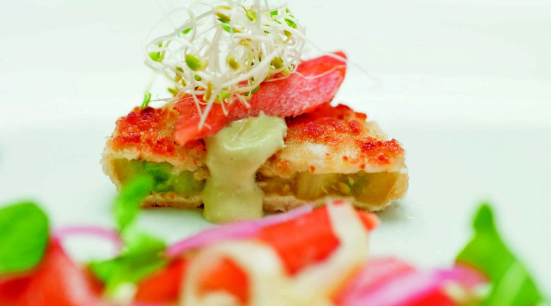 In executive chef Josh Drage’s seasonal salad at The Ranch at Rock Creek, the horseradish vinaigrette gives the greens and smoked trout a kick. The simple but inventive avocado vinaigrette, rather than a more traditional mayonnaise-based dipping sauce, lends a healthier touch to the fried green tomatoes.