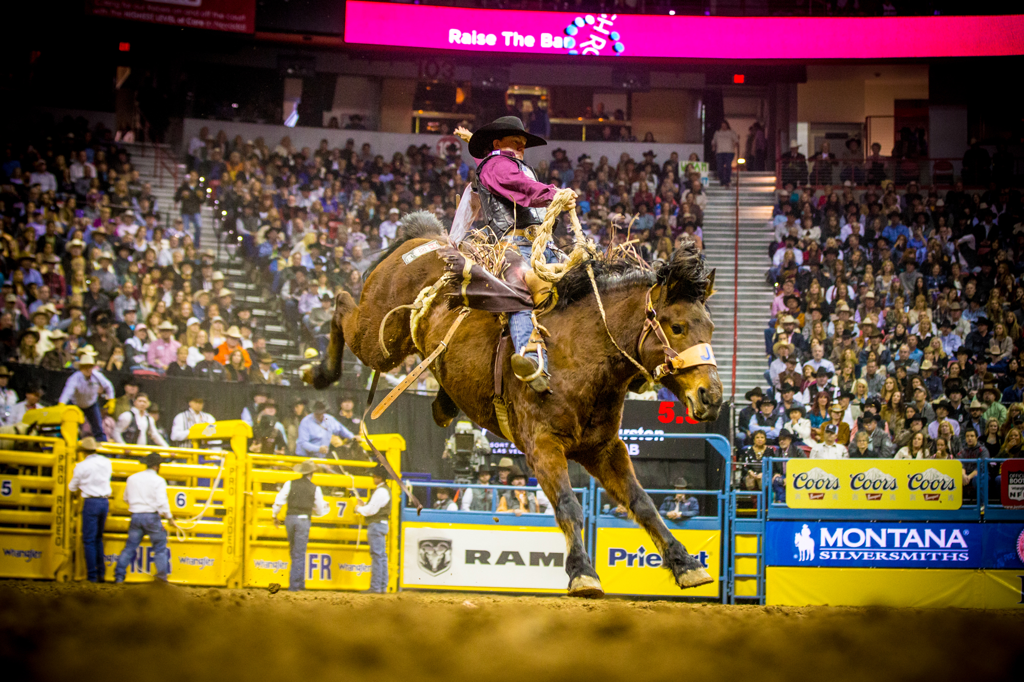 After winning the steer riding at Canada’s premier rodeo finals event, Thurston successfully rode broncs for the Sheridan College in Wyoming. In 2014, he was touring the big prize money bronc matches that are strong in the Northern tier of the United States and the Southern Tier of Canada. He wasn’t setting the world on fire, but it was easy to see the young twister had something special. In 2015, he proved that by qualifying in 11th position to come to Las Vegas.