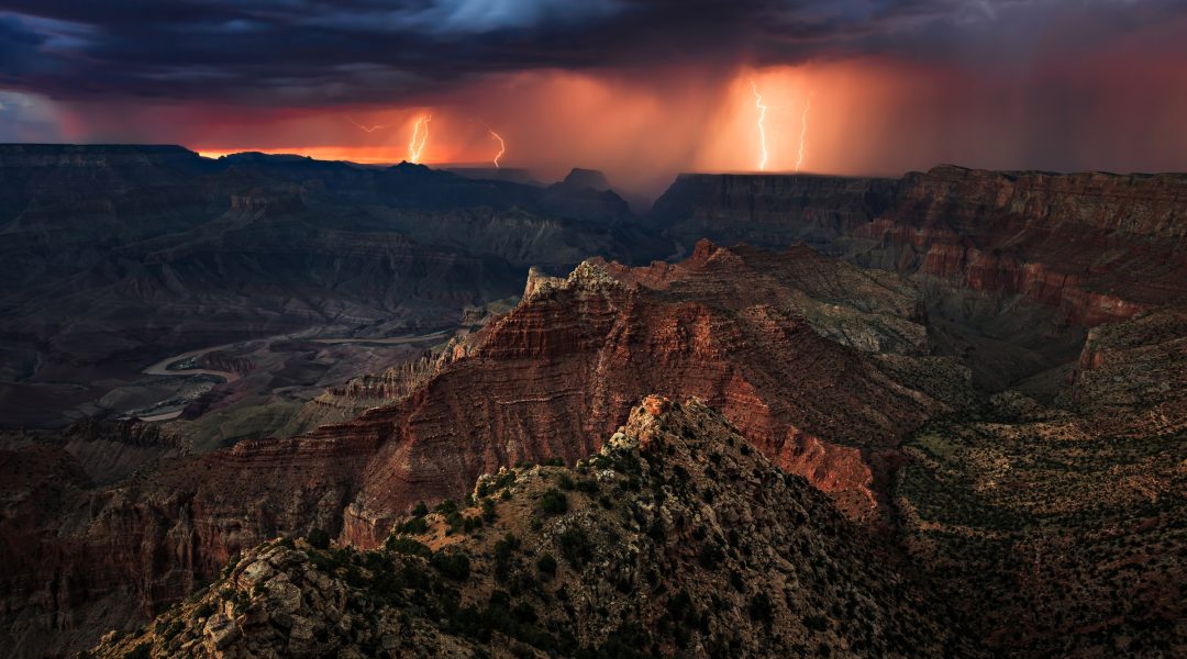 When he shot “Torment Over the Canyon,” he and his wife, his brother, and his brother’s girlfriend were with him in the Grand Canyon watching a distant storm when they suddenly found themselves surrounded by other developing storms. As frightening as it was, it was also a thrill.