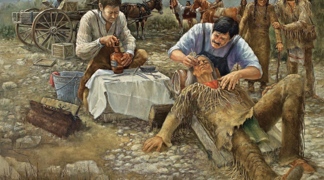 “I share [Terpning’s] interpretation that attitude and composition say it all,” Hester says. “For this exhibition, I developed Texas stories through the colorful characters of the time.” Paintings depict Dr. Ferdinand Herff performing his innovative cataract surgery on a Comanche chief and the white-feathered arrow shot by raiding Indians into his fencepost as a sign to spare his ranch; tales from the life of Texas Ranger John Coffee “Jack” Hays; and the Treaty of Lasting Friendship, signed by Fredericksburg founder John Meusebach and Comanche chiefs Buffalo Hump and Santa Anna.