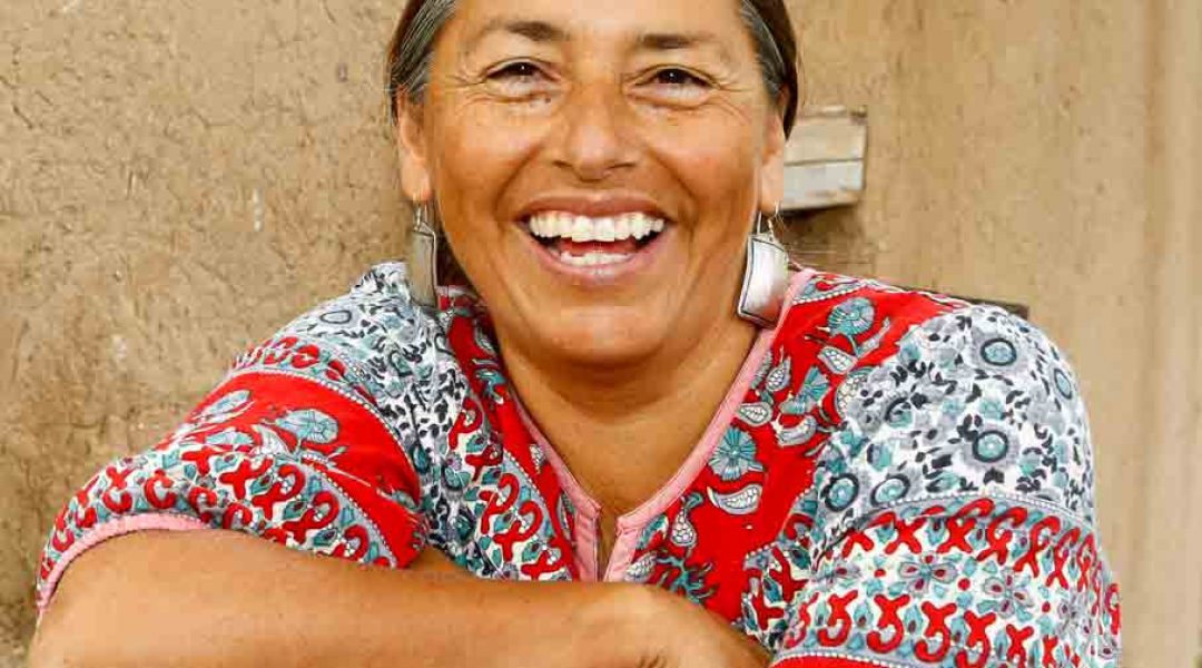 Swentzell, her long, braided black hair graying at the temples, sits at a sturdy wooden kitchen table with wide wooden benches. She speaks in a warm, straightforward manner, her brown eyes crinkling at the corners when she smiles. The serene adobe house, which she built at Santa Clara Pueblo in northern New Mexico, is as expressive of the artist as are her sculptures. One earth-colored hand-plastered living room wall features a 6-foot-long reclining clay woman in bas-relief. Hand-built kitchen cabinet doors are adorned with bas-relief terra-cotta faces, each with a different expression. Outside, where once there was nothing but bare dirt, a small grove of tall bamboo proliferates among a lush diversity of greenery, all planted by hand. Just beyond a koi pond and fountain, chickens, turkeys, and goats mill around in their enclosures.