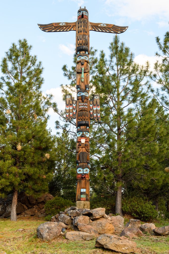 The property is remote—you can’t see it from any public road—yet conveniently located only a few minutes from nearby Sisters, Oregon, and its airport (not to mention it’s the closest private residence to the 10,000-ft. Three Sisters Mountains). If the surrounding nature wasn't enough, the main residence—with three bedrooms, three full baths, and two powder rooms—offers even more inside its rustic-modern, craftsman-style interiors. There are 360-degree mountain views, Brazilian hardwood decking, and a balance of wide-open glass windows with substantial Western furnishings. Rock formations, antler fixtures, and timber-inspired décor complement an outcropping of regional art, like the life-size North American bison sculpture and totem pole located between the main house and the stables.
