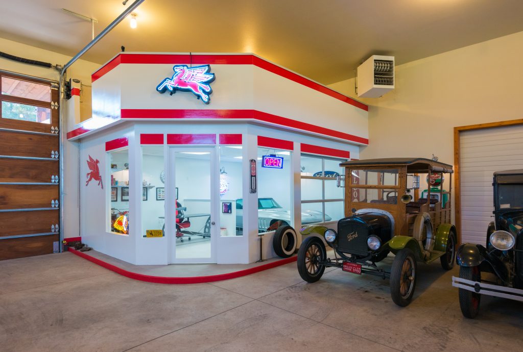 Yes, we mentioned stables. Recently added to the property is a massive facility floored in reinforced concrete that includes four custom horse stalls, a tack room, a vet/laundry room and a wash rack (there’s also an adjacent 2-stall horse barn with hay storage). But wait, there’s more. The 12,680-sqft. structure also includes a 1950s themed garage/shop and drive-through RV bays, and offers space for a helicopter, boat, RVs, cars, or anything your collector’s heart desires.