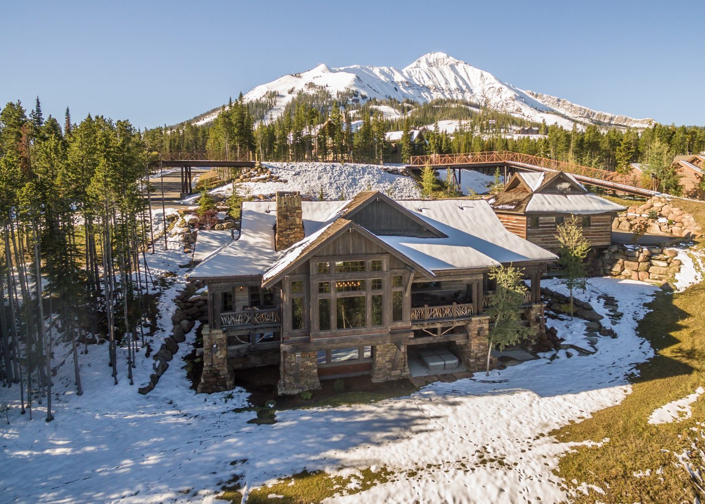 Ski in, snowboard out, or snowmobile around this pair of winter playgrounds for sale in Big Sky, Montana.