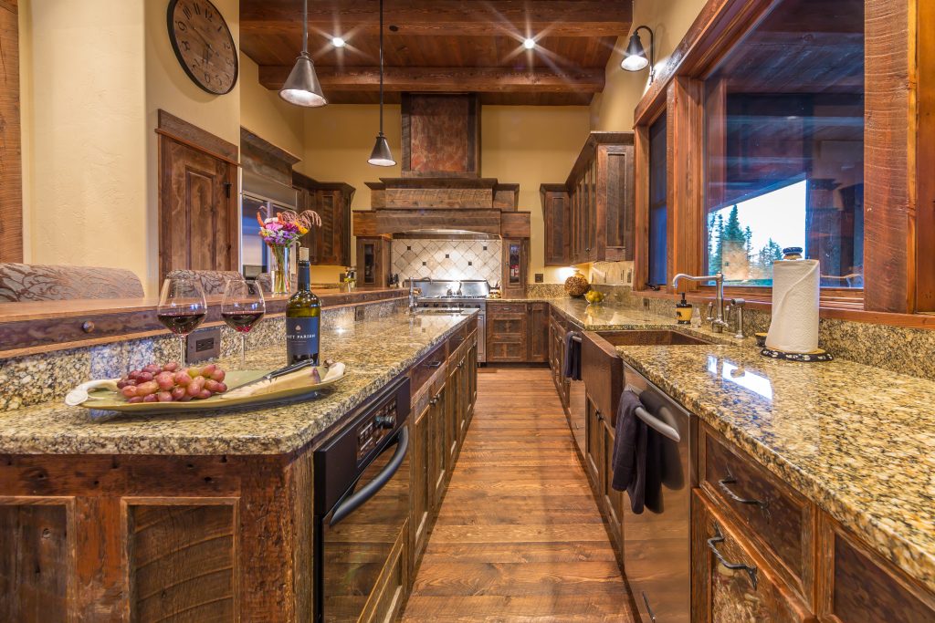The exterior of this mountain home welcomes you with natural landscaping, several two-dot sandstone patios, an outdoor hot tub, and classic fire pit. On the inside, history and functionality join forces to add yet another layer of character—the floors are reclaimed fir from an historic Montana schoolhouse and an Alaskan cannery; the stairs are made of ocean side pier wood; countertops are horse stall planks; and the ceiling and wall paneling is recycled corral boards. Combine the richness of these woods with an imaginative design that gently echoes the classic lodges of Yellowstone Park, and you begin to see why this home is so compelling. The layout delivers intimacy without sacrificing spaciousness. —Yellowstone Club