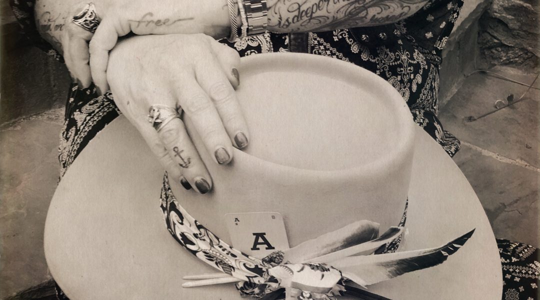 Then, one day at a bar in Las Vegas, she noticed a group of people wearing all wearing outstanding toppers. “I felt compelled to go and introduce myself to them,” she says. “I don’t know why, but I did, and it wound up they were all famous hatmakers.” Among them was Willee Roberts, a hatmaker who puts each of his one-of-a-kind designs through a Lakota medicine ceremony and who would eventually take on West as his apprentice. West still blesses the hats she makes to this day. “[The hats] are very individual,” she says. “They’re built to not just be fashionable, but hopefully to bless the person that is wearing them. I go all over the world to find the trims and the vintage ribbons, silk, and antiques. All of the things that I use to make those hats tell a story, not just to be an item for fashion but to make the person that’s wearing them feel special, confident, and beautiful.”
