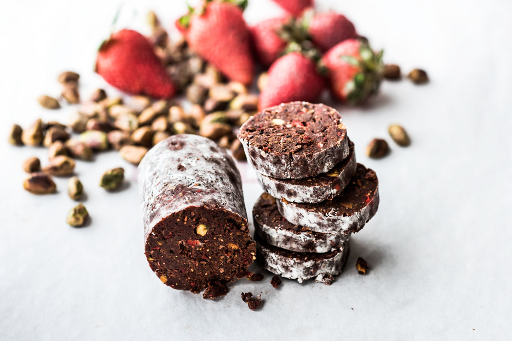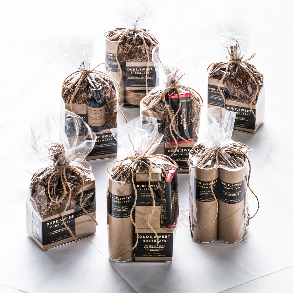To hear Clapner tell it, though, Dude, Sweet wasn’t part of “the plan.” As a professional pastry chef, chocolate was an ingredient she worked with, but until she took on a project with the person who would become her business partner, she hadn’t given it much thought. “I am a complete accidental chocolatier,” Clapner says. “I did pastry for a couple of decades and chocolate was always a part of that, but it was not until I did a project for my business partner while he was at Merrill Lynch that it became a focus. It was at that moment that my only focus was chocolate, and my palate and ideas had changed so drastically that I became enamored. It had so many nuances, and the sheer number of choices drew me in. Chocolate is powerful and can take many ingredients thrown at it. I loved that.”