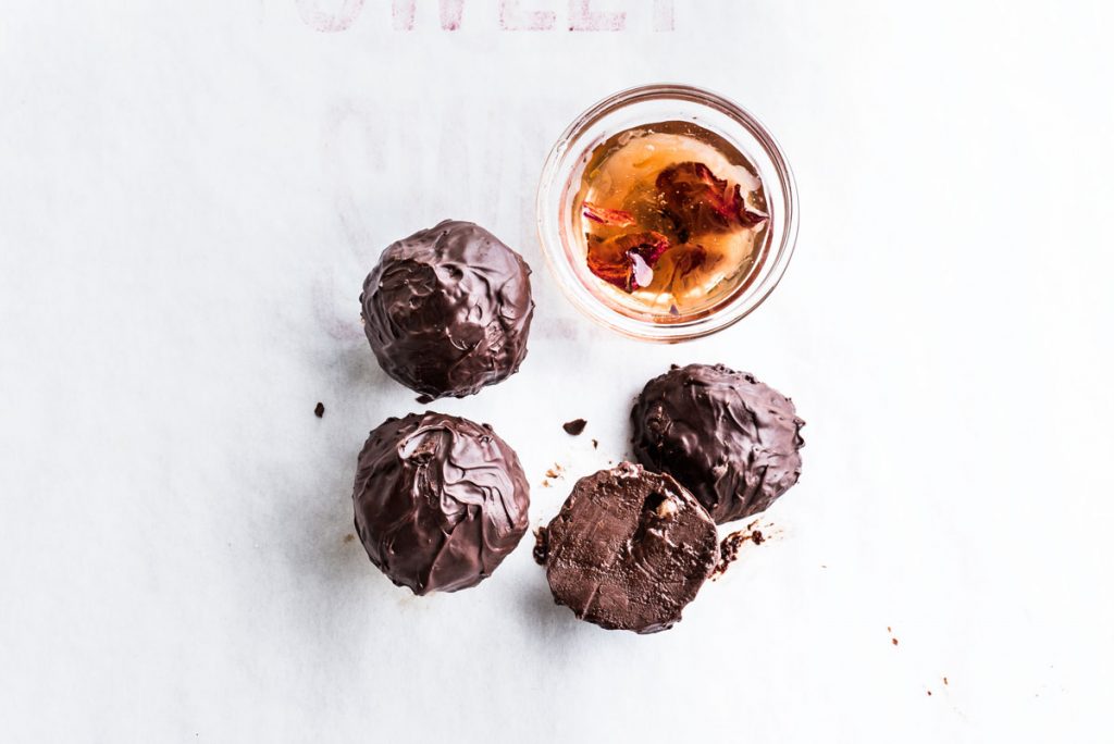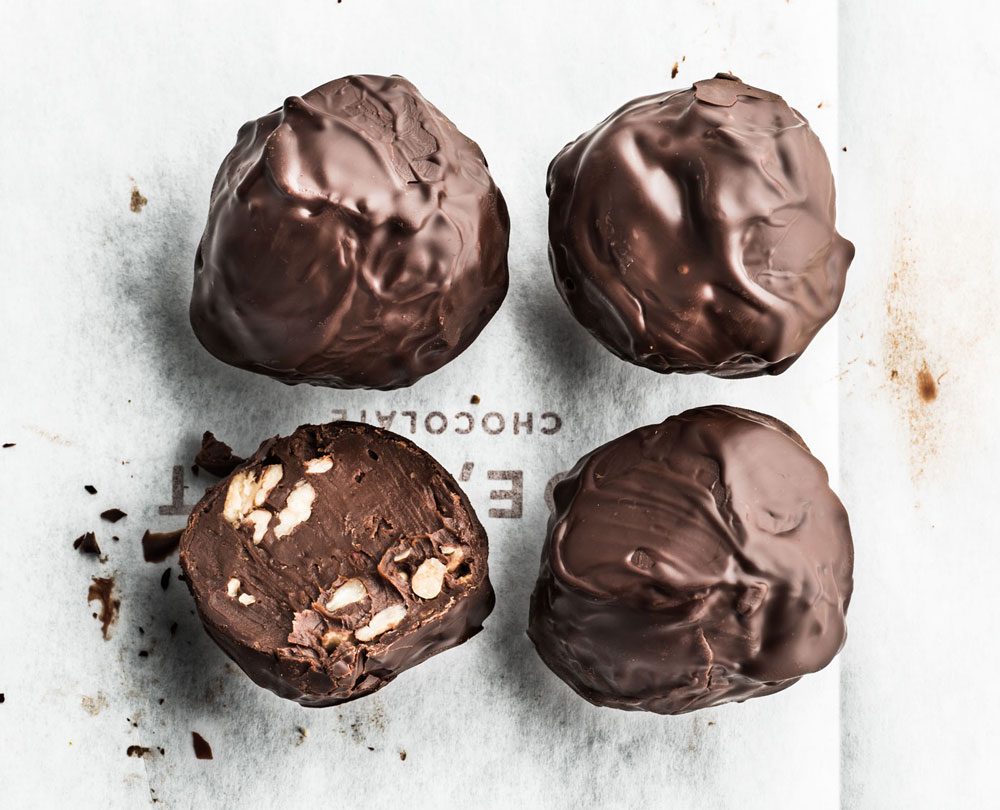 I’m a fan of the Black MMMole Toffee, small blocks of chocolate infused with house-made mole negro that balances spice and earthy notes. I have difficulty resisting Ready to Rumble truffles, balls of Valrhona 55 percent Equatorial chocolate, Balcones Rumble whiskey, hibiscus, ginger, and grapefruit.