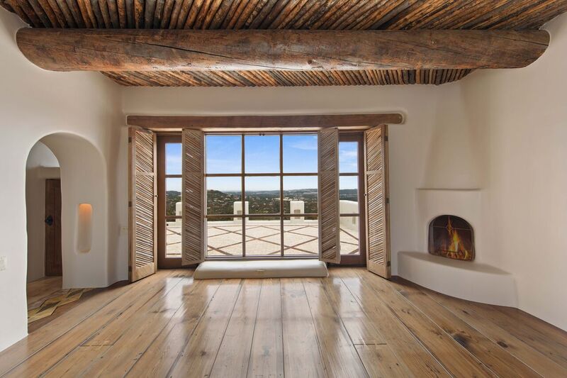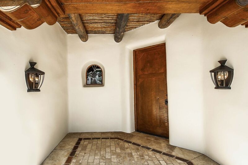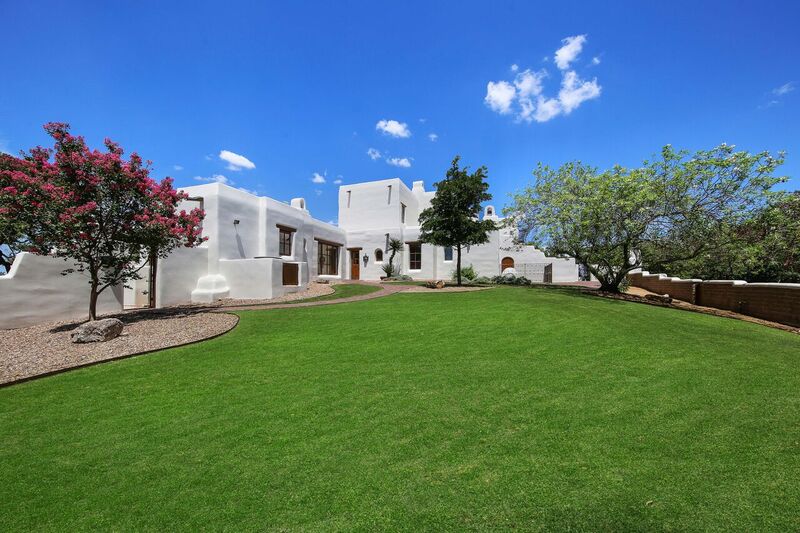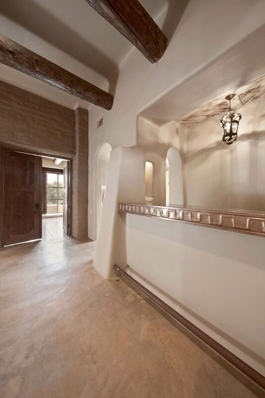 Bill Tull, the world-renowned Arizona artist-turned-architect who passed away in 2000, custom-built the Santa Fe-style abode for Mr. Strait. Among extensive hand-crafted details, the nearly 8,000-square-foot dwelling features imported Adobe materials, 14 hand-sculpted fireplaces, custom stained glass windows designed by Tull, saguaro cactus rib shutters, a custom Tull-designed copper bar top, two en suite oversized guest bedrooms with customized baths, an exercise room with a sauna, a separate casita equipped with its own living and dining accommodations, a sport court, and an infinity edge pool and spa to boot.