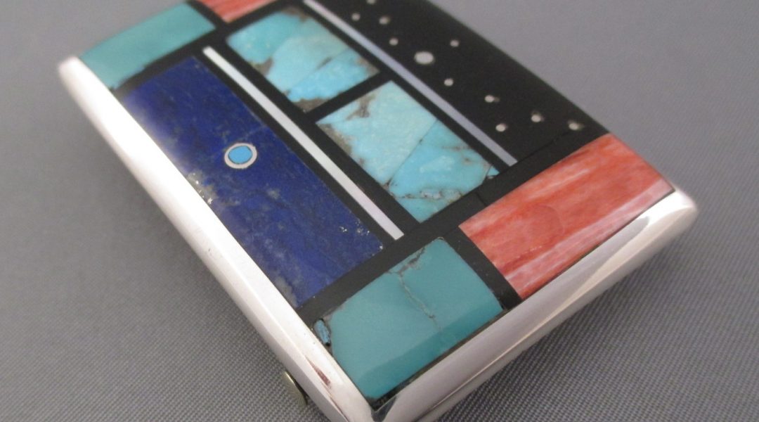 Multistone inlay buckle by Jimmy Poyer (Navajo)