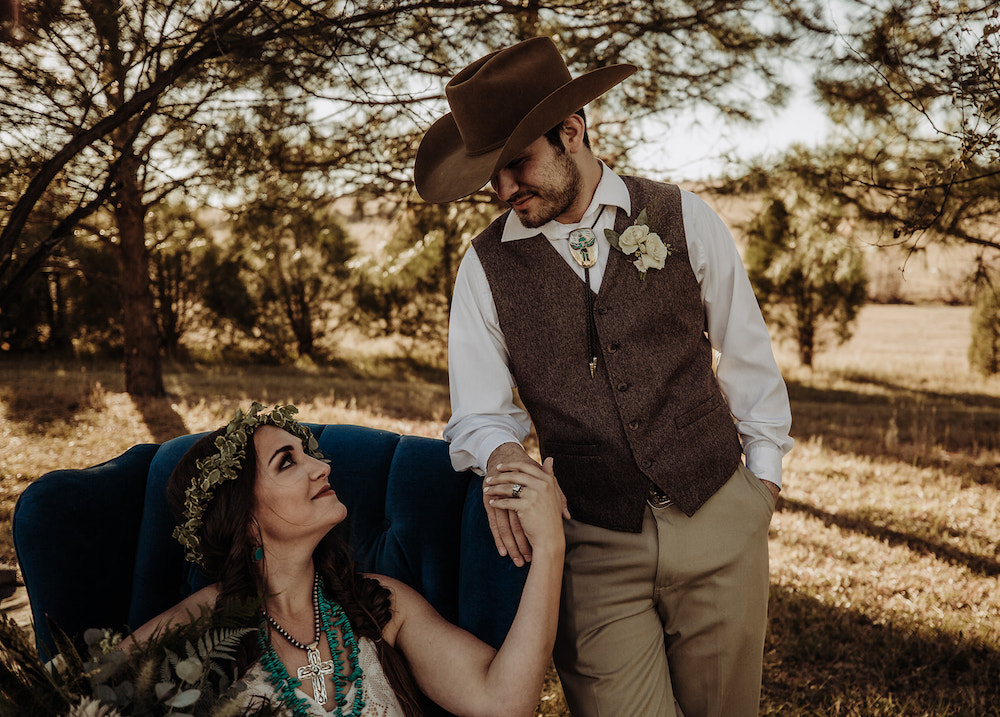 Daedra Lynn Logan: We actually forewent a wedding to save for a house. And so now I’ve got my four acres in my hometown and my big giant windows. I’m putting in shiplap, and I get to still play with the pretty stuff. I really love lace, boots, turquoise, flowers, and putting it all together. We were actually planning a wedding at Fulford Barn in Brownfield, Texas, but we just couldn’t afford the wedding and the home. But we are planning to renew our vows in the mountains, just the two of us, kind of adventure elopement style. And you can bet, I’m going to get one helluva photographer!