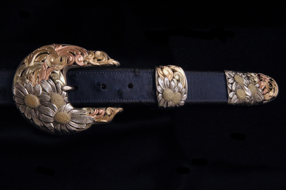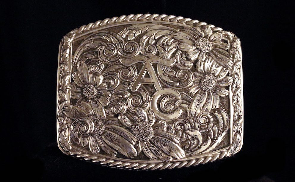 Trying to make belt buckles was a lot of trial and error at first, and when it came to engraving, Hardy says, no one would teach him and there was no book. “I bought tools and just experimented,” he says. “That was in the late ’70s, early ’80s, and people were not open to letting you in their shop or helping you. It took me about four years to get someone to show me.”