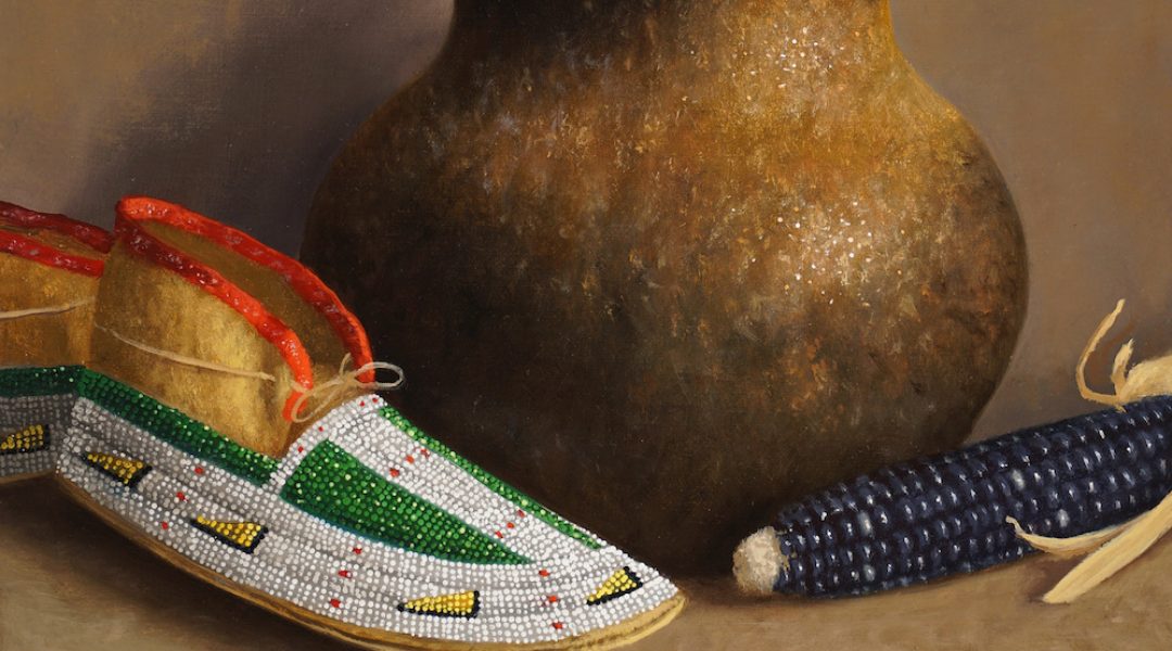 Acheff’s process often begins with seeing a photograph or a print and thinking it would be great in a painting. “I started painting Curtis photographs in the ’70s, and I thought that would be a great way to extend the theme with the artifact. I like to see an object and see how it feels to me. What do I get out of it? What is the common emotion?”