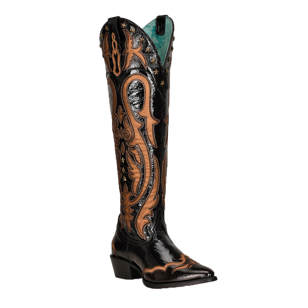 Glossy black with brown inlay tall boots — C3949, corrallboots.com