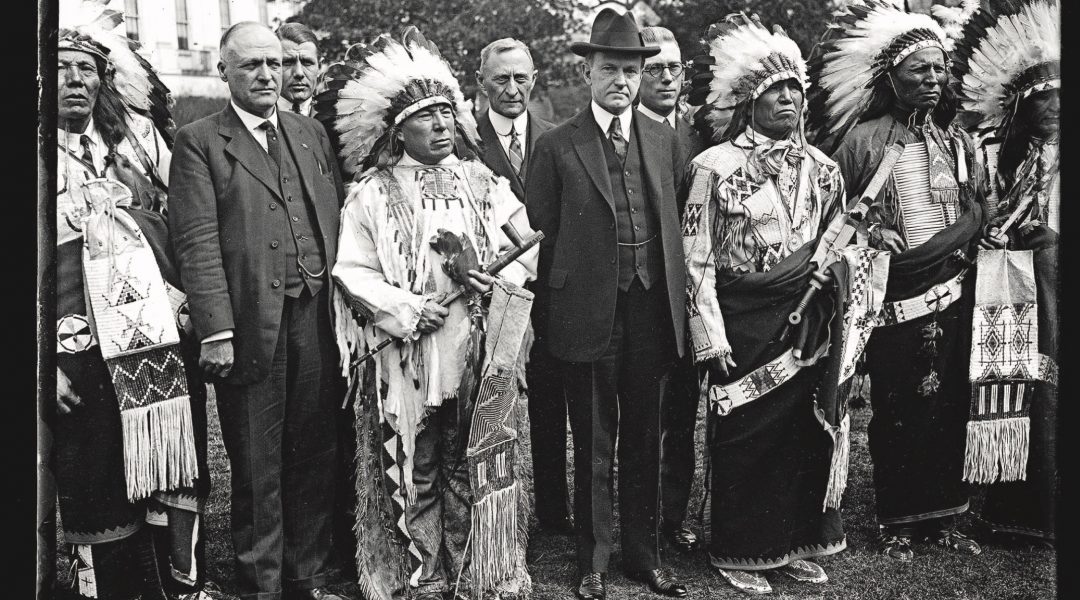 A black-and-white photograph of Calvin Coolidge posing with four tribal leaders outside the White House in 1924 has come to symbolize one of the most celebrated moments in the federal government’s relationship with Native Americans.
