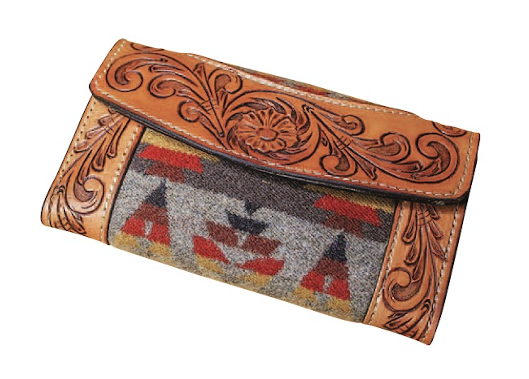 From clutches to backpacks to full-size totes, the Western look is on-the-go friendly. Tooled leather, Pendleton wool inlay, and full-bodied fringe are among design highlights popularized by leather artisans. Louis Vuitton has also claimed a space within Western styling as makers add turquoise and leather accents to vintage bags.