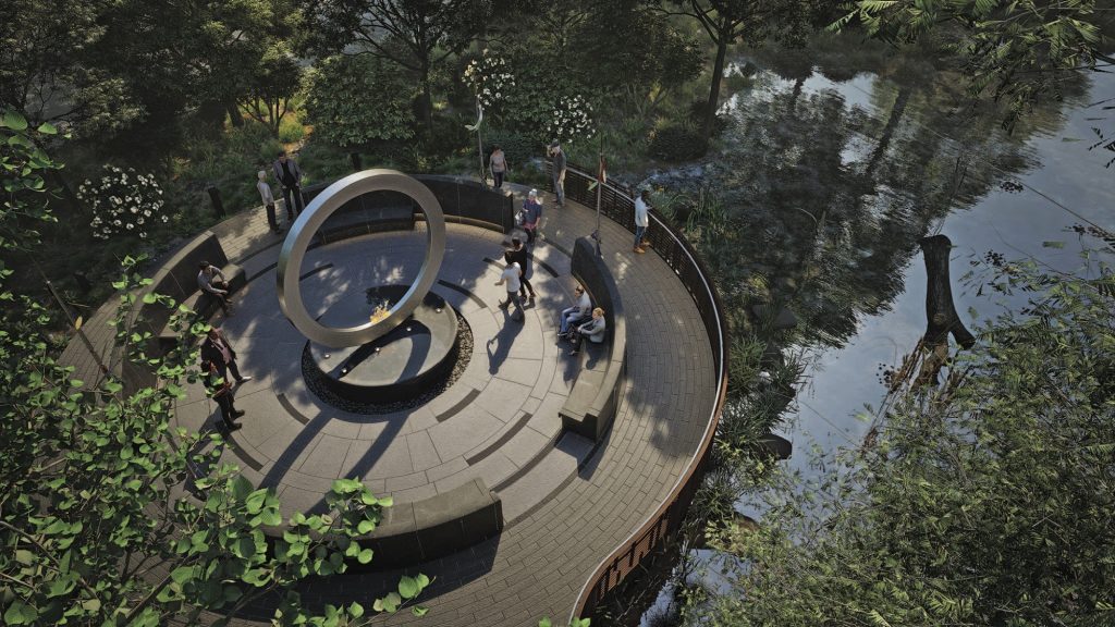 “One thing we heard over and over again in community consultations was a wish for the experience of visiting the memorial to be a healing and contemplative one,” Trautmann says. “Something that surprised us was a strong preference expressed for the memorial to be located in a quieter place, a contemplative and reflective place rather than one of the prominent visible places, such as right on Independence Avenue.”