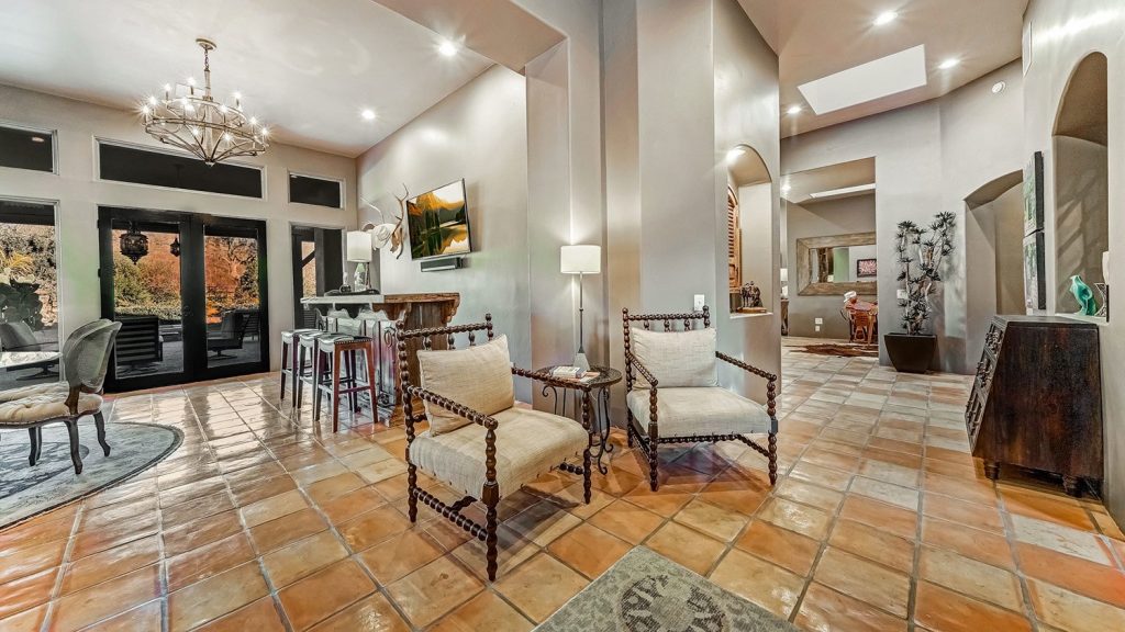The primary residence comprises more than 6,000 square-feet of classic Southwestern style. Floored by mostly Saltillo tile, the home underwent renovations in the last five years that give the interiors a luxurious feel. A small casita, gorgeous patio, outdoor pool, and putting green add to the well-appointed accommodations.