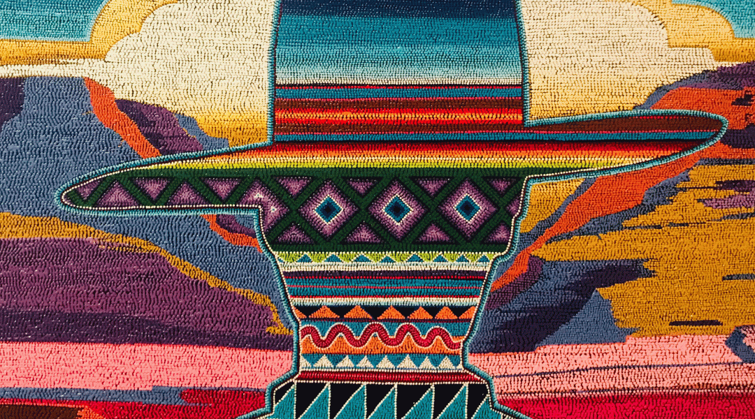 Today his home and studio are in Knoxville, Tennessee, where Hardridge lives with his girlfriend and their two long-haired Chihuahuas. Every day, surrounded by his father’s moccasins and traditional beaded fan, a beaded rosette from the 1940s from his grandfather, and an old Pendleton blanket from his grandmother, he sits down at a long table to begin the process of expressing himself through imagery, one tiny dot of paint at a time.