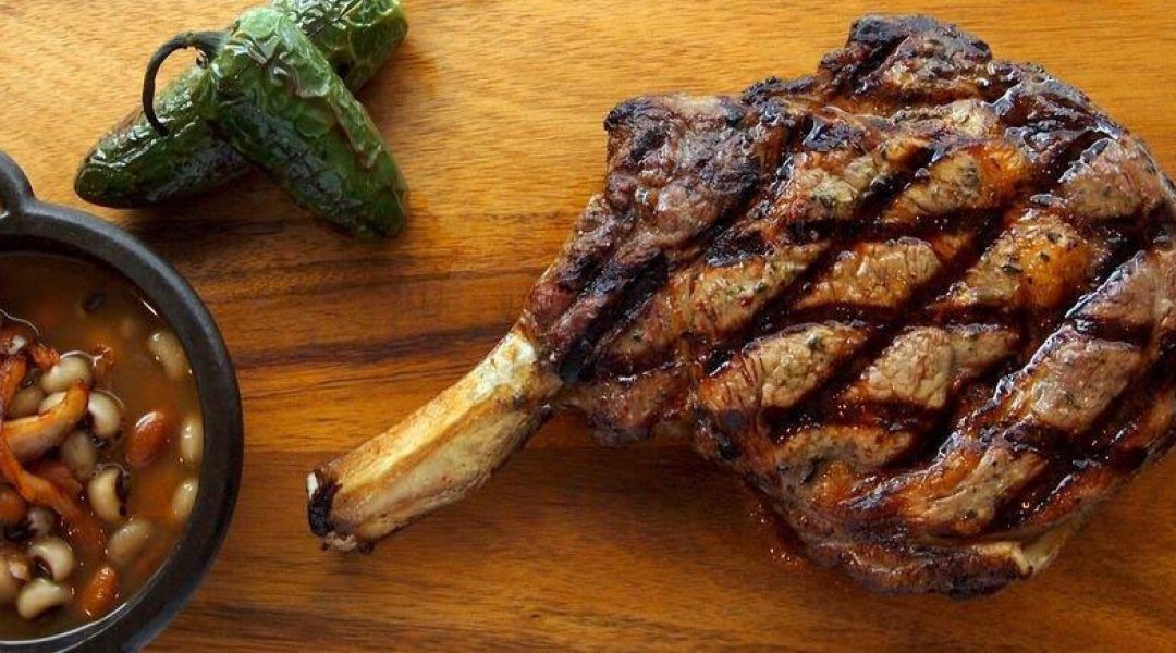 Cook on open flame grill until medium-rare (8 minutes per side). Let sit for 3 – 5 minutes before serving. Plate and top with steak butter alongside chiles toreado and the paired Texas Sazerac.