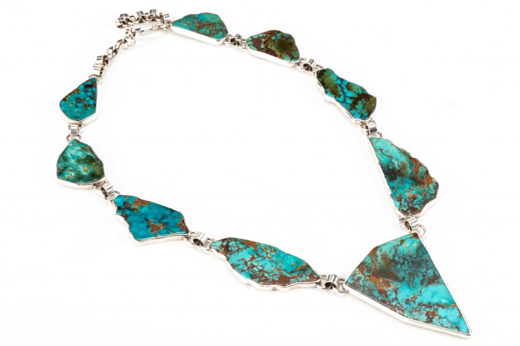 Rodney Coriz (Santo Domingo Pueblo) Morenci Kingman turquoise chain necklace, Made in New Mexico ($1,690), jewelryladyredriver.com