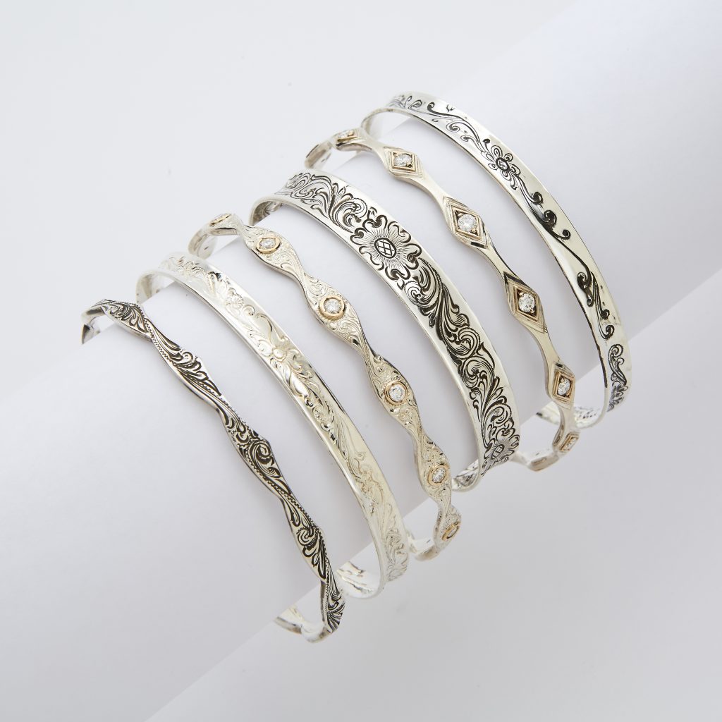 Hand-engraved bangles, Made in California (prices vary), silverkingusa.com