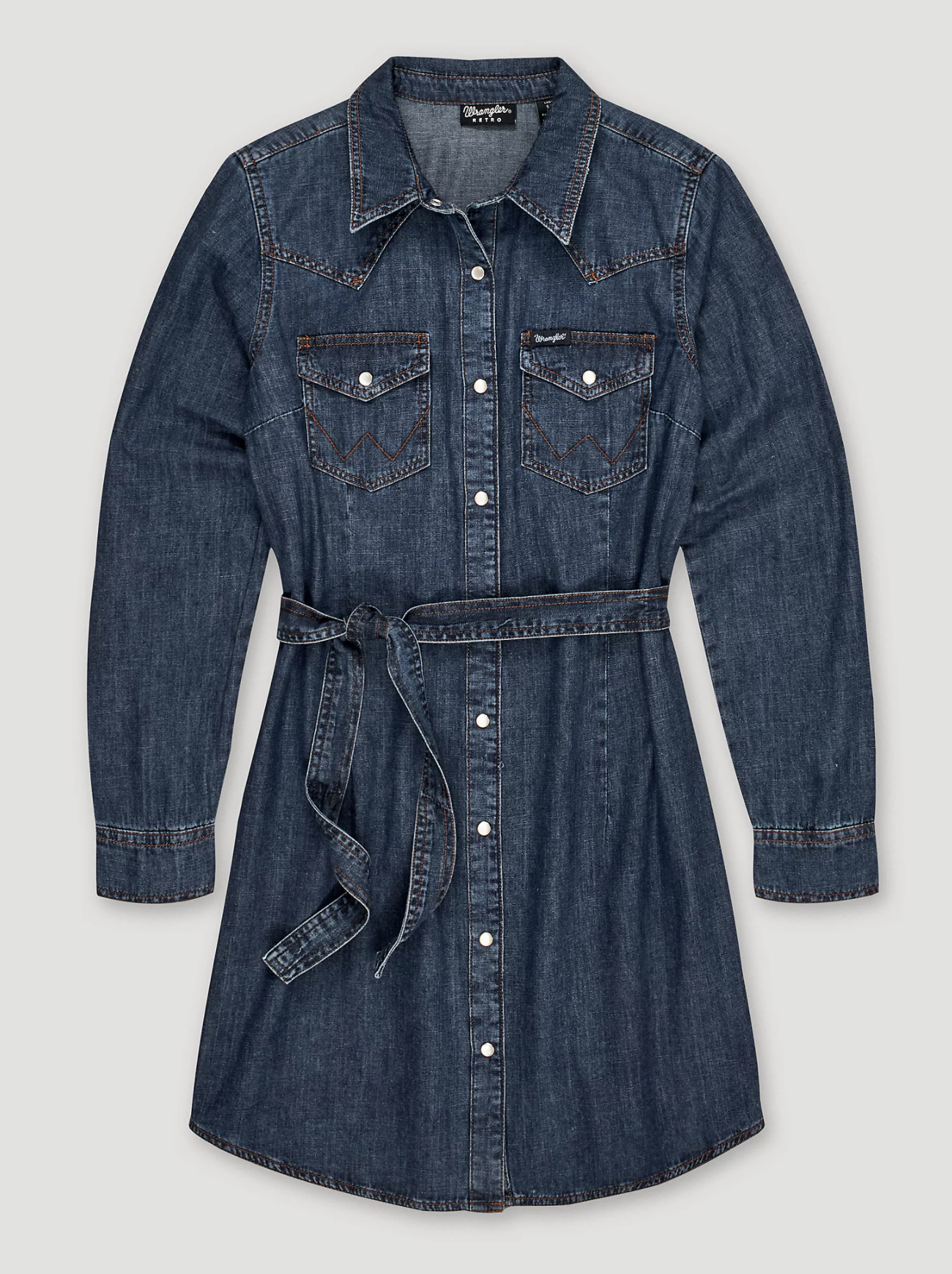 Dress: Wrangler long-sleeve Western snap denim dress, ($49), wrangler.com