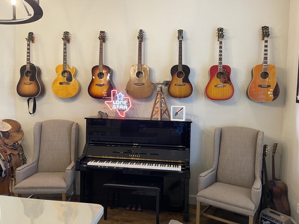 Watson: I have some framed show prints from playing the Grand Ole Opry and the Ryman. I also have an autographed Chris LeDoux 8x10, an old Lone Star neon sign, and my first guitar. I have things there that remind me how far I’ve come and how much further I want to go.
