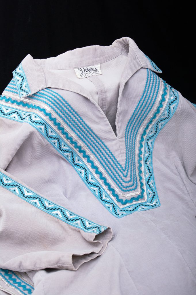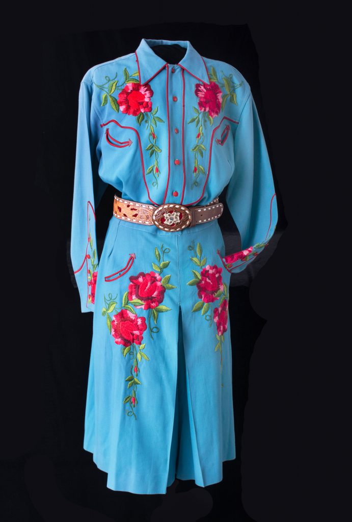 Schafer’s favorite items are the patio dresses by Dolores Gonzales. She loves not only the style, but also how they highlight that Western wear isn’t just European or Euro-centric. “It’s also majorly influenced and created by Hispanic and Indigenous influences, and patio dresses are like the perfect melting pot of that, like European, Hispanic, and Indigenous design all coming together into a single object,” Schafer explains.