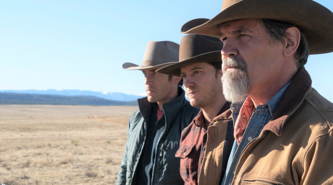 Josh Brolin (pictured above with co-stars Tom Pelphrey and Lewis Pullman) heads the cast as Royal Abbott, a rancher who discovers, while fighting for his land and family, an unfathomable mystery at the edge of Wyoming’s wilderness. The trailer indicates he’s at a loss to explain or understand recent events that bespeak supernatural influences, and is requesting — well, OK, more like demanding — some kind of sign from the Lord. But the trailer also indicates you should be careful what you wish for.