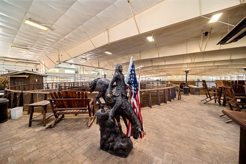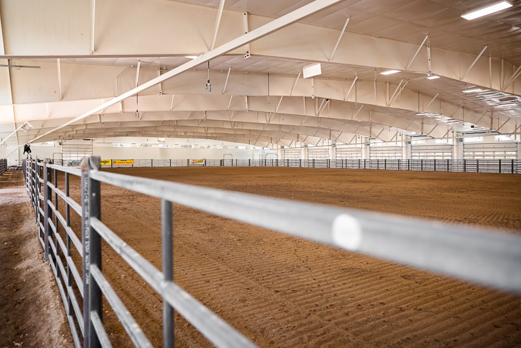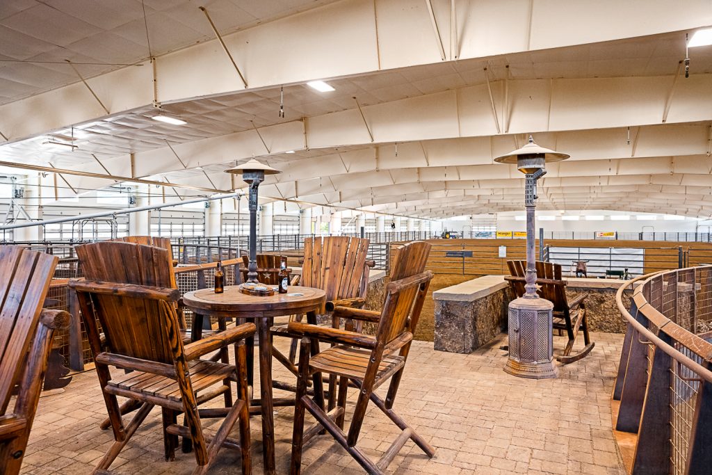 A 59,500-square-foot arena supports work and play, housing necessary equipment and facilities, including a Priefert horse walker, chute, and round pen, but also a bar and lounge — the ideal place to kick back after a long day or watch the roping action in the arena.