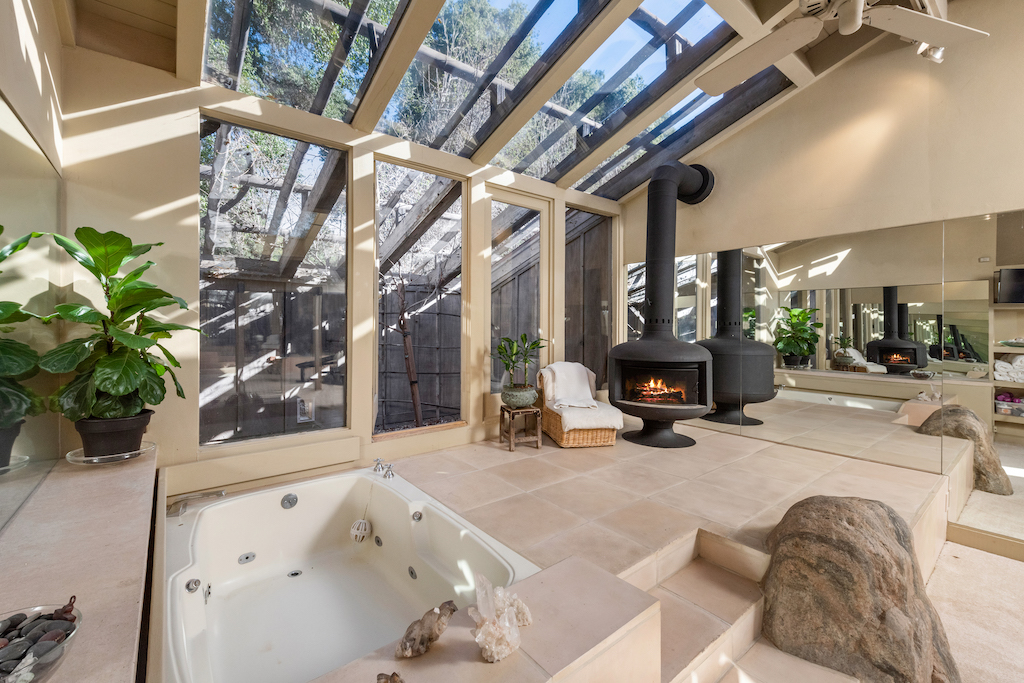 There are 4,800 square-feet of living space between the main house and two-story guest house. One of Gray’s favorite rooms is the Josh Schweitzer-designed kitchen, and a favorite feature are fireplaces high enough to be seen while lying in bed or while working at the kitchen counter.
