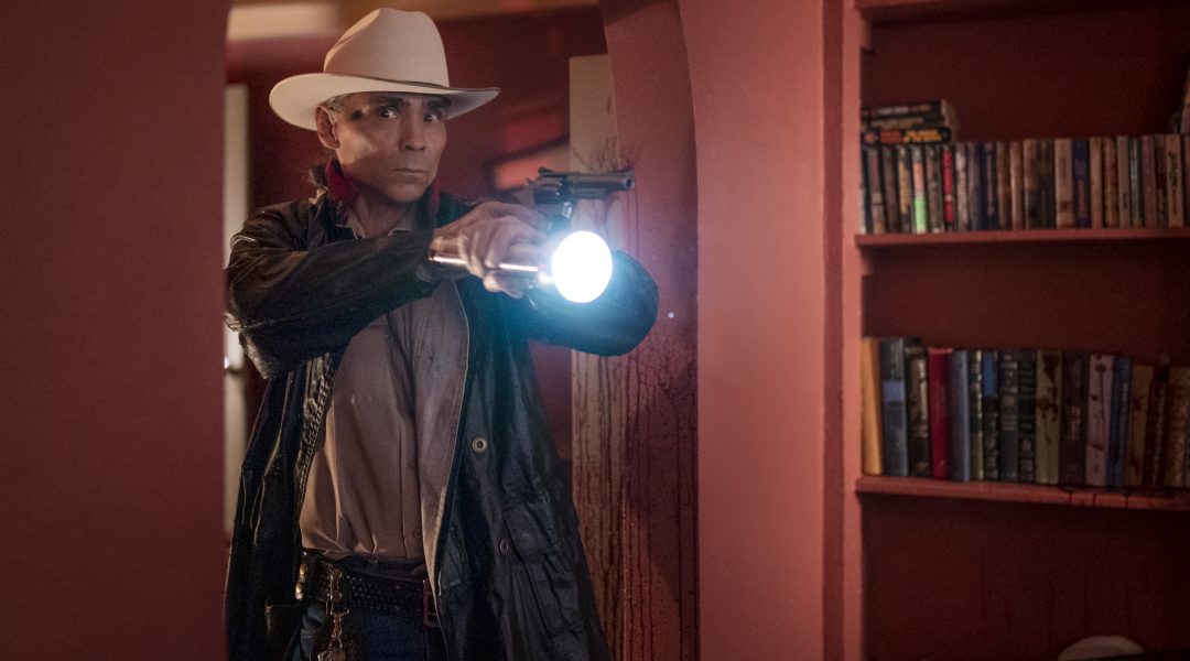 Tribal Police officers Joe Leaphorn, Jim Chee and Bernadette Manuelito launch an investigation into a double murder near their remote outpost in Navajo Nation, and find they may be dealing with evil forces both earthly and supernatural. What are we to make of this? Here are our five takeaways from “Monster Slayer,” Episode 101 of Dark Winds.