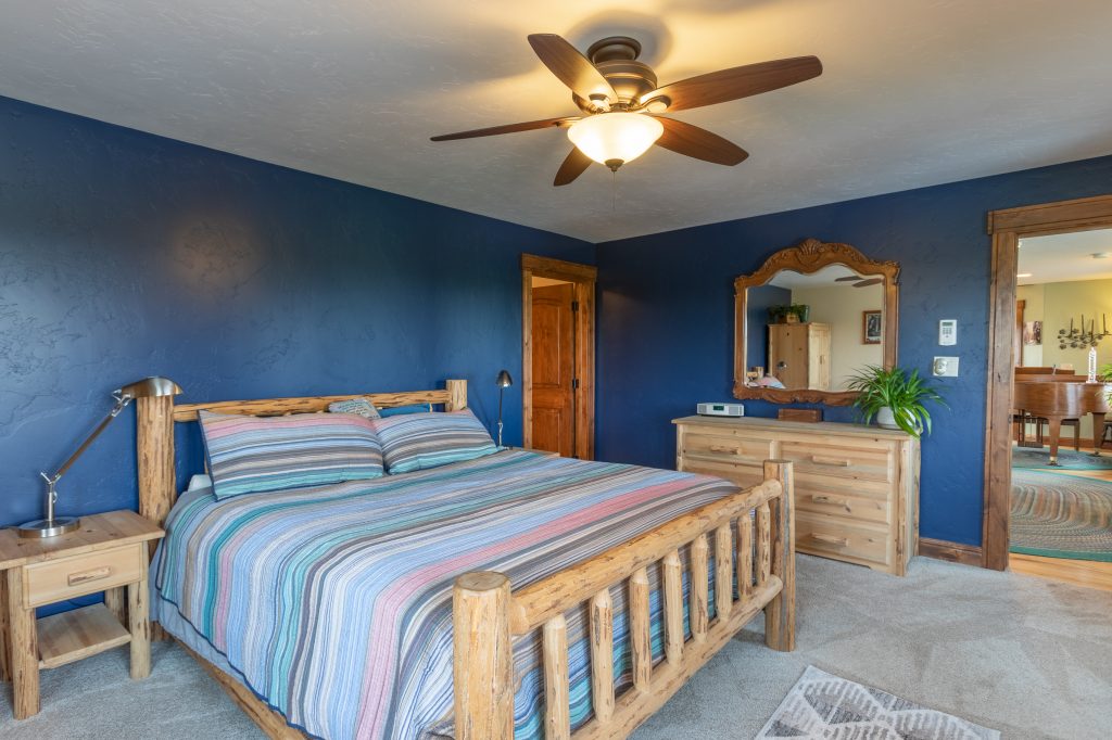 The main floor ensuite, the views of the Palisades and landscape provide the mountain retreat you are looking for. A large soaking stone tub and walk-in shower create a spa-like experience in this space.
