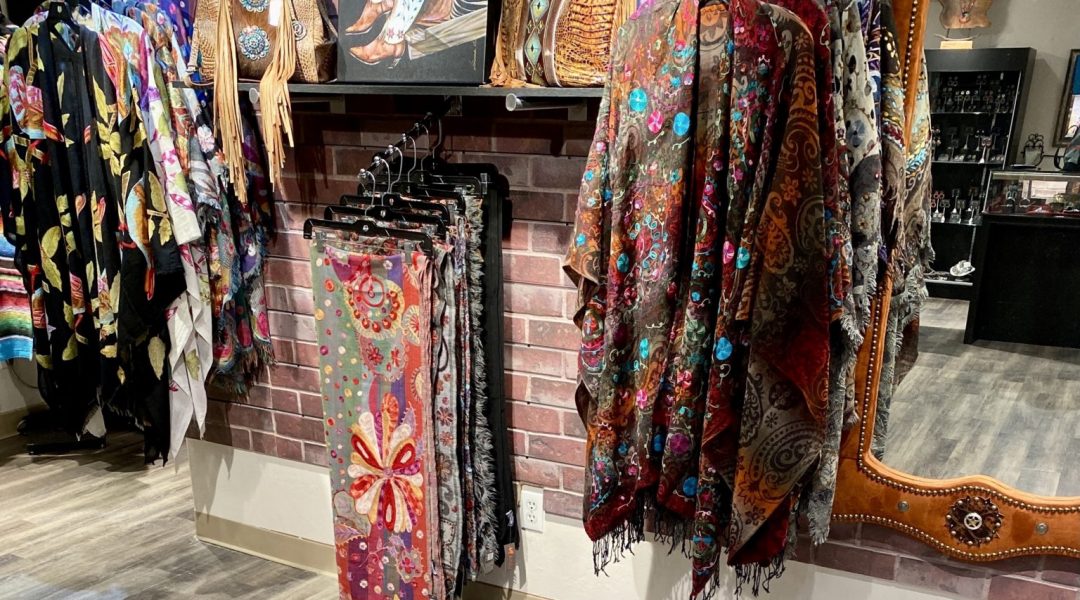 Rocki Gorman: Located in historic La Fonda Hotel, my shop is located on the corner of Water Street and Old Santa Fe Trail. I sell my jewelry designs, many one-of-a-kind or limited editions, as well as Coreen Cordova. J. Alexander Rustic Silver boxes are a big hit, and I offer an eclectic collection of clothing, including Marrika Nakk, Pat Dahnke, Brazil Roxx, Hearts Desire, Jaded Gypsy, and a new favorite Lady Lancaster, who offers antique quilts repurposed into jackets. In addition, I am so fortunate to be the exclusive shop in New Mexico that sells Giddy Up Boots, which are Louis Vuitton repurposed, embellished cowboy boots.