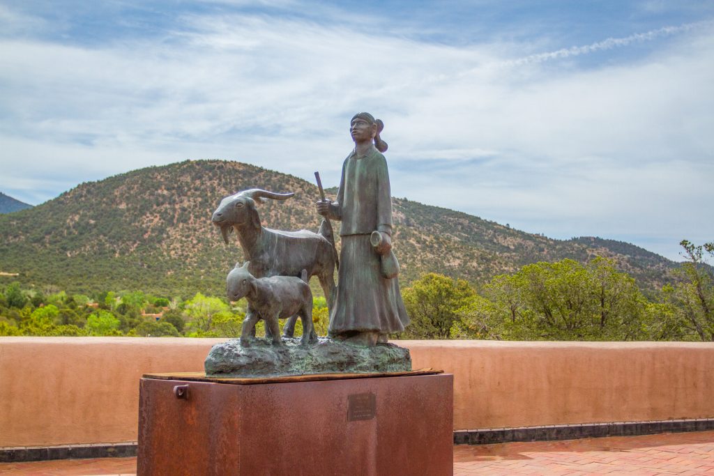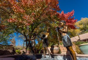 Outdoor statues along Canyon Road