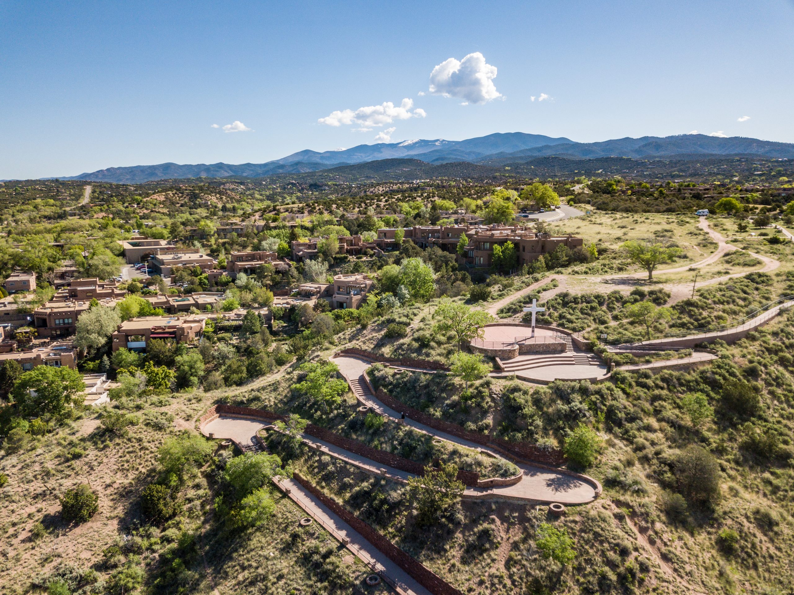 Just four miles north of town is Bishop’s Lodge, an Auberge Resorts Collection property nestled at the base of the Sangre de Cristo Mountains. Newly reopened after an extensive and loving renovation, the historic property borders the Santa Fe National Forest and sits on the same spot where Santa Fe’s first archbishop built a chapel and a lodge more than 150 years ago.