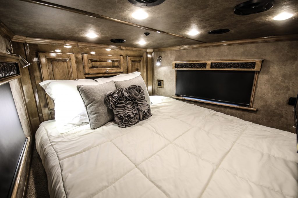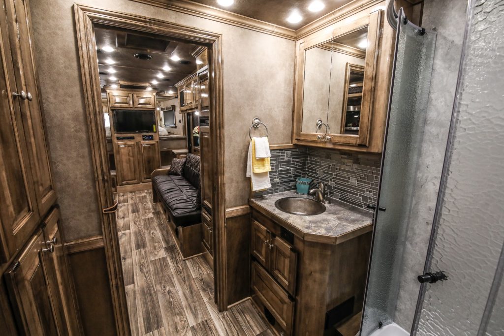 The spirit of innovation also continues. One-of-a-kind wraps, extrusions, and wheels are available for the exteriors. Inside, his company can carve out quarters for up to 12 horses with a tack room on the side. "We make it all as custom as a client wants, and as a long as we feel it is safe. Someone may ask for 12 saddles in their tack room, and we'll have saddles and bridle hooks that we space out. Maybe we'll realize we need another 6 inches there, so we change it right there on the specs," he says. "We do a lot of medical fridges, hot and cold water, fans, and even spa trailers with water treadmills that a horse can use to exercise and get well at the same time."