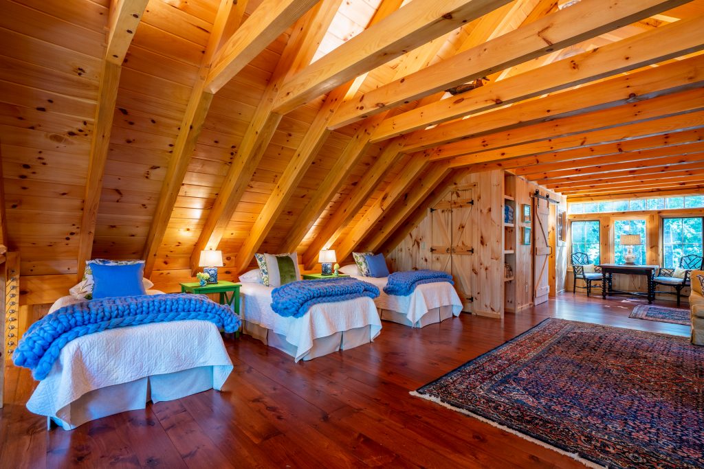 The second level of the Barn Yard's Carriage Barn kit is ready-made for an open living, kitchen, and dinging area, along with sleep-a-crowd quarters. As with all the Barn Yard kits, the Saratoga is crafted with precise joinery — all of it numbered — that allows their team to raise the barn quickly and efficiently.