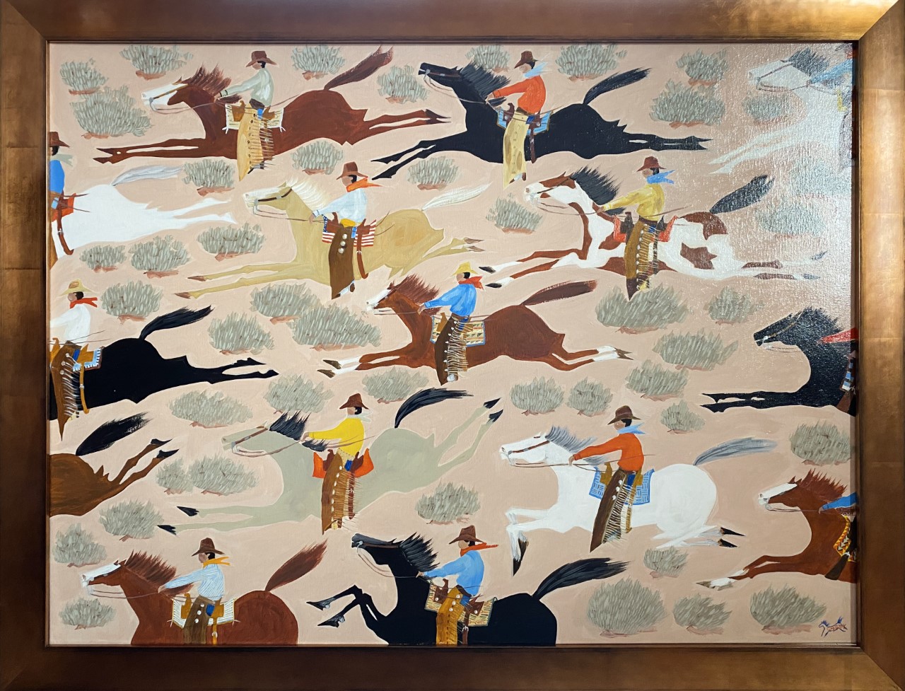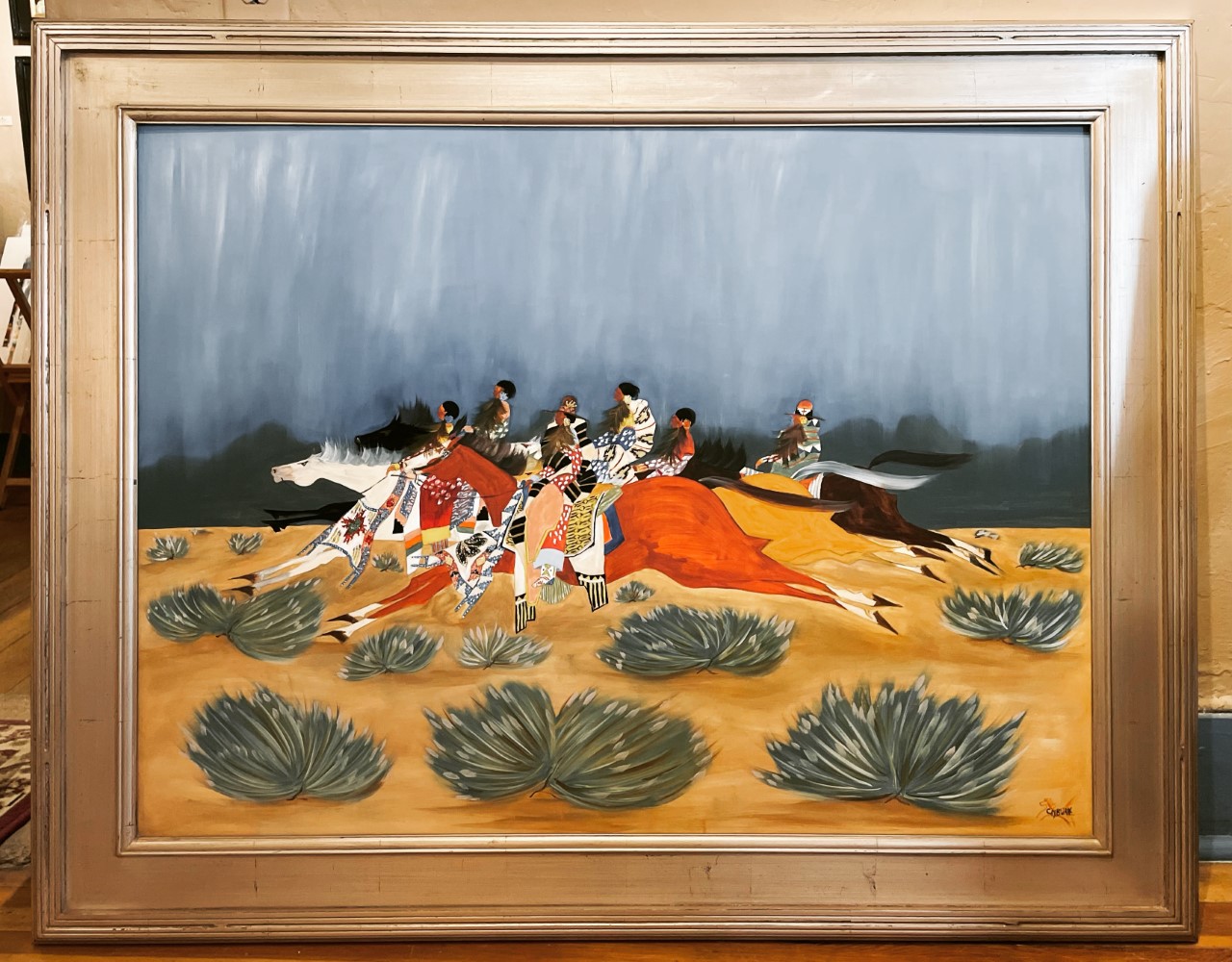Burk: Mostly horses. Whether it’s a cowboy scene or a Native American scene, there will be horses 90 percent of the time. I grew up surrounded by them. They have a deep meaning to me, keeping me connected to my roots and past as well as my everyday life.