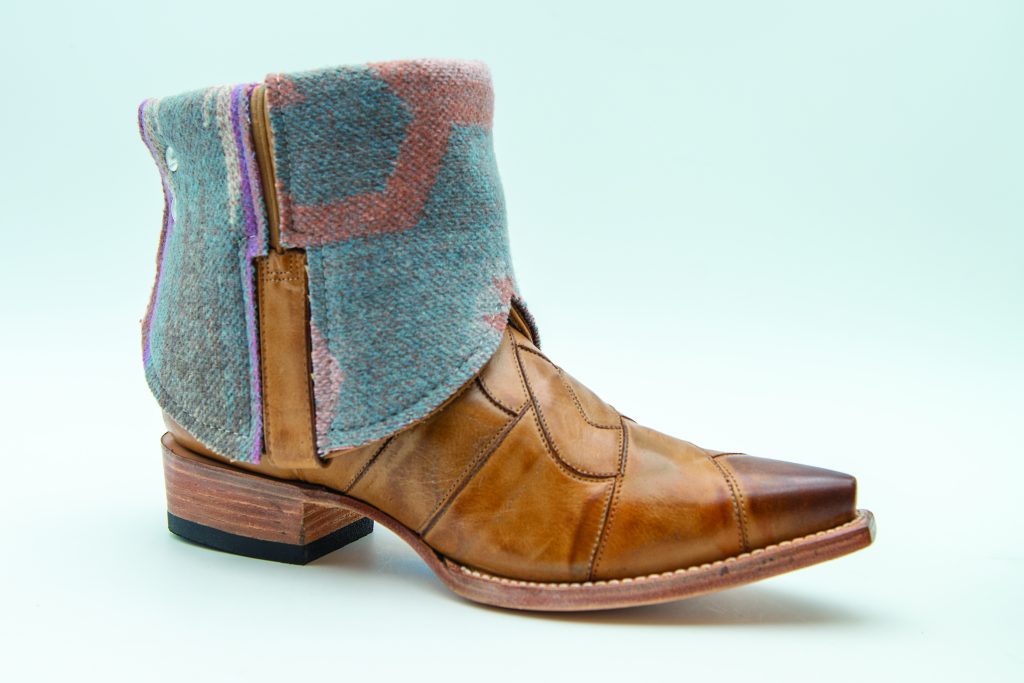 [1] Tan swirl Canty Boots with Pendleton wool ($675), cantyboots.com [2] Vintage western shirt ($64.99), crueldenim.com [3] Zoe leather fringed Mauritius jacket ($318), texasbootcompany.com [4] Pearl Flower Hatband (contact for pricing), caseycurtisdesigns.com [5] Resistol Men's Quinton Stripe Snap Western shirt ($64.99), bootbarn.com