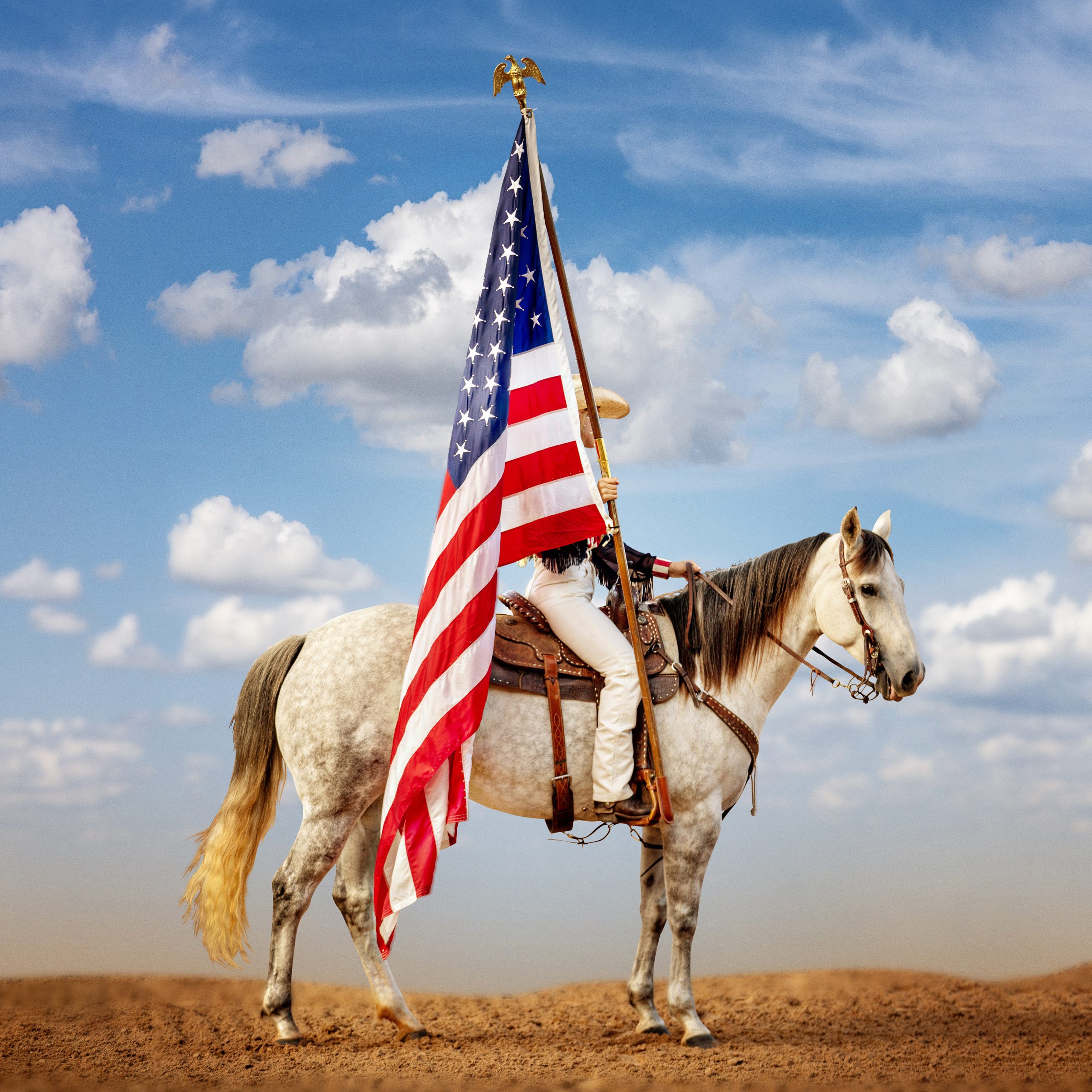 In Steely, barrel racer Steely Steiner clenches an American flag for the flag lap. "We've taken a moment out of our day to be appreciative of this experiment that is America," Wrubel says.