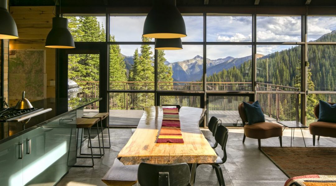 Perched below New Mexico’s two highest peaks, Kachina and Wheeler, this five-bedroom, five-bathroom home’s exterior is crafted with 150-year-old reclaimed timbers and siding sourced from a shed once owned by the Winchester Rifle Company in Massachusetts. Interiors were done by hotel designer Alexandra Champalimaud, who layered in an eclectic array of furnishings sourced from Europe and Africa. Note: A vehicle with four-wheel drive and snow tires or chains is mandatory to get to Wilderness Lodge in the winter as it’s located at 10,000 feet above sea level.