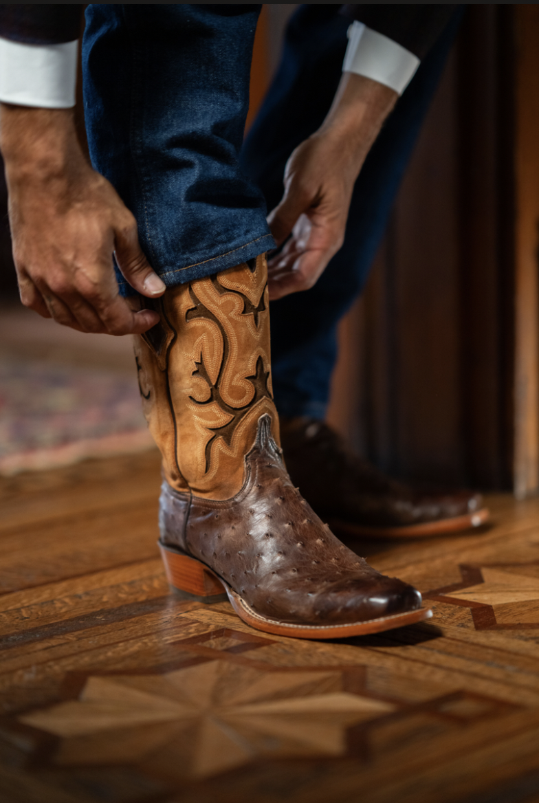 The Nopales is inspired, designed, and named after the appearance of a prickly pear pad found in the Texas Trans-Pecos region. The boot features raised crowns of full quill ostrich vamps and overflow into beautiful suede quarter inlays. Look sharp and feel rugged while wearing the softest Lucchese materials. Available in Tobacco, Royal Blue, and Mink.