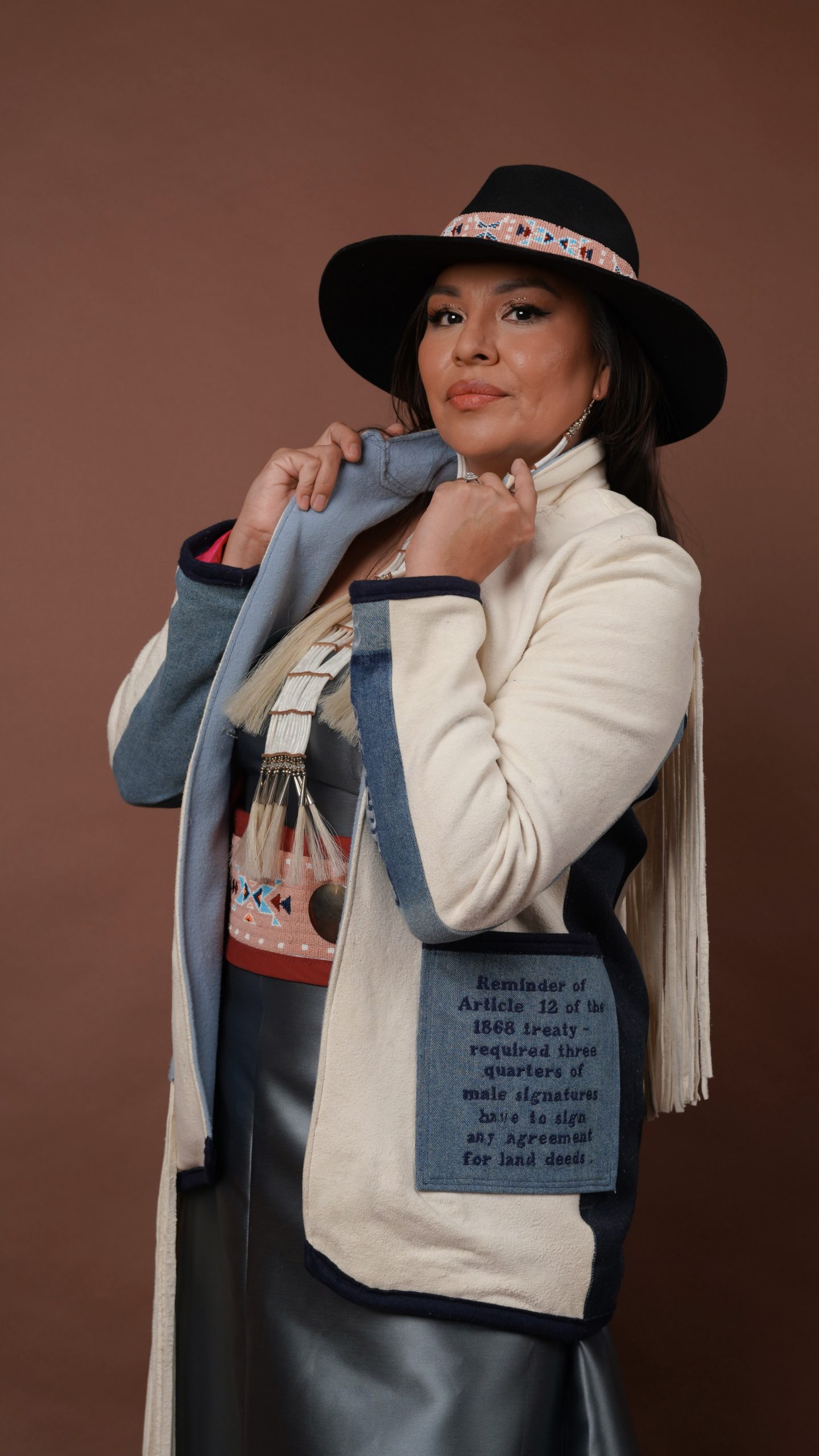 The Hunkpapa Lakota designer from South Dakota also shines light on Indigenous communities through fashion.