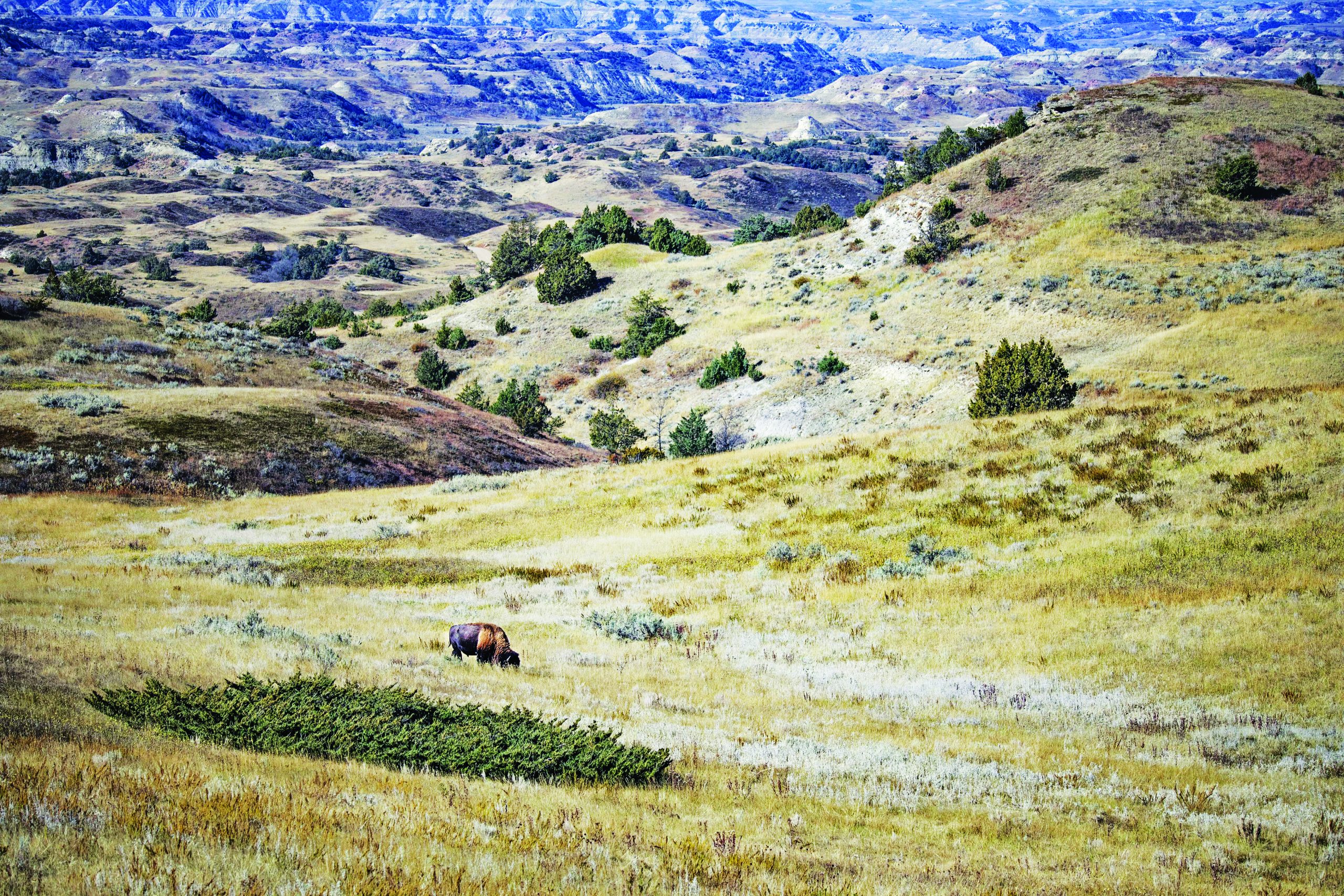 Lone bison at Theodore Roosevelt National Park. Photo by Craig Mellish, October 2022