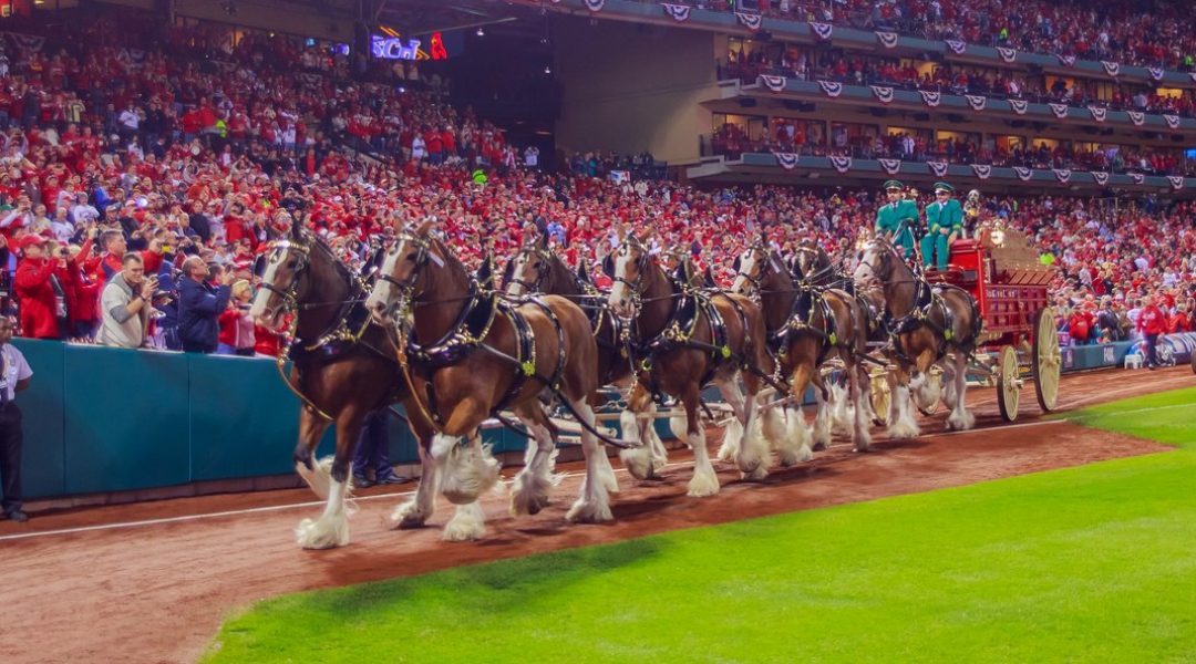 But wait, there’s more: “The Budweiser Clydesdales will also play a pivotal role on the ground in Las Vegas, delighting consumers and representing Anheuser-Busch and Budweiser’s longstanding heritage.”