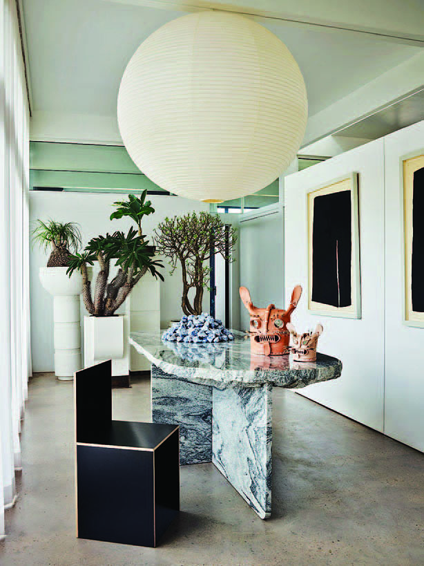 When it came time to furnish the approximately 2,000-square-foot, three-bedroom, two-bathroom house, Friedman leaned into a Donald Judd-inspired minimalism for both aesthetic and financial reasons. “After I built the house, I had no money, so it was all so random. There were mattresses on paletts and door-made coffee tables, but it was all I had to work with,” he says. But as he began refilling his coffers, an affinity for maximizing returned. “I thought it would be interesting to be a minimalist, but I didn’t survive it.